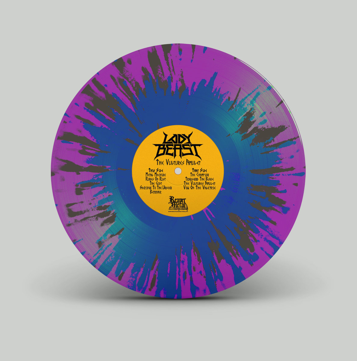 Limited to 300 copies on Translucent Purple Heavy Splatter vinyl with a two sided lyrics sheet. The LADY BEAST logo on the cover is printed in Gold ink.